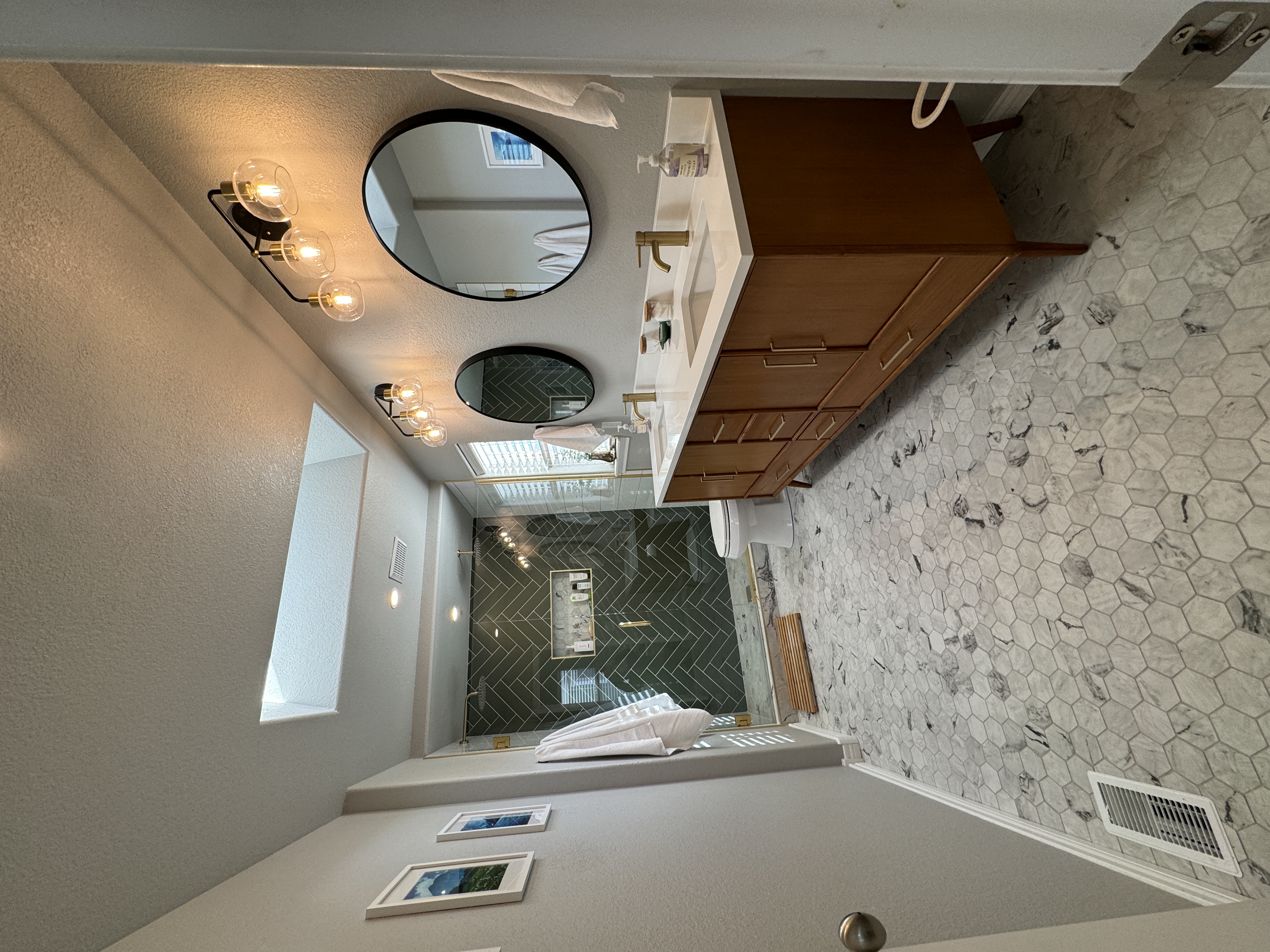 Jim was top notch at our master and secondary bathroom remodels. We couldn’t be happier with the high quality work and professionalism we experienced. Now we have our dream master bath! We found Jim through stellar reviews on NextDoor, and everything other clients raved about were true and more: He was great communicating timelines, pricing, staying within budget, working with our architectural designer, and scheduling his reliable subcontractors. Jim is well organized due to years of experience, and he’s timely, and tidy. I did not expect the latter. Each evening, our spaces were tidied enough so we could continue living in our shared spaces near our bathrooms. He went above and beyond protecting our floors and walls in the walkways to get to work areas too. We highly recommend Jim and his team of designers and subcontractors for any renovations. This is the dream contractor! See more See less